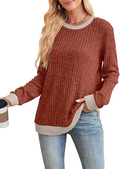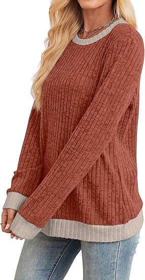 ✦Unique Design: Color Block Trim Tops, Lightweight Sweaters cozy, Loose Casual Long Sleeve Shirts, Basic Tunic Tops for Leggings. The contrasting trim makes it easy to show your unique personal fashion charm.